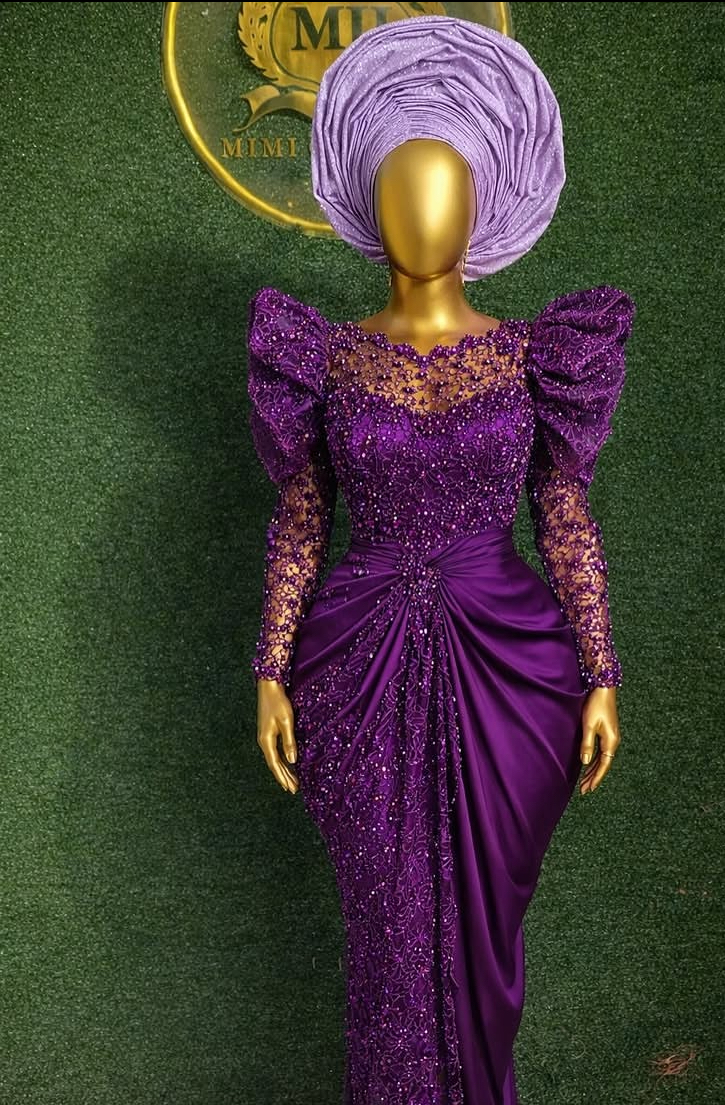 Experience the beauty of purple and lilac with this outfit. To order contact mimiokeren on 07065504332 to order